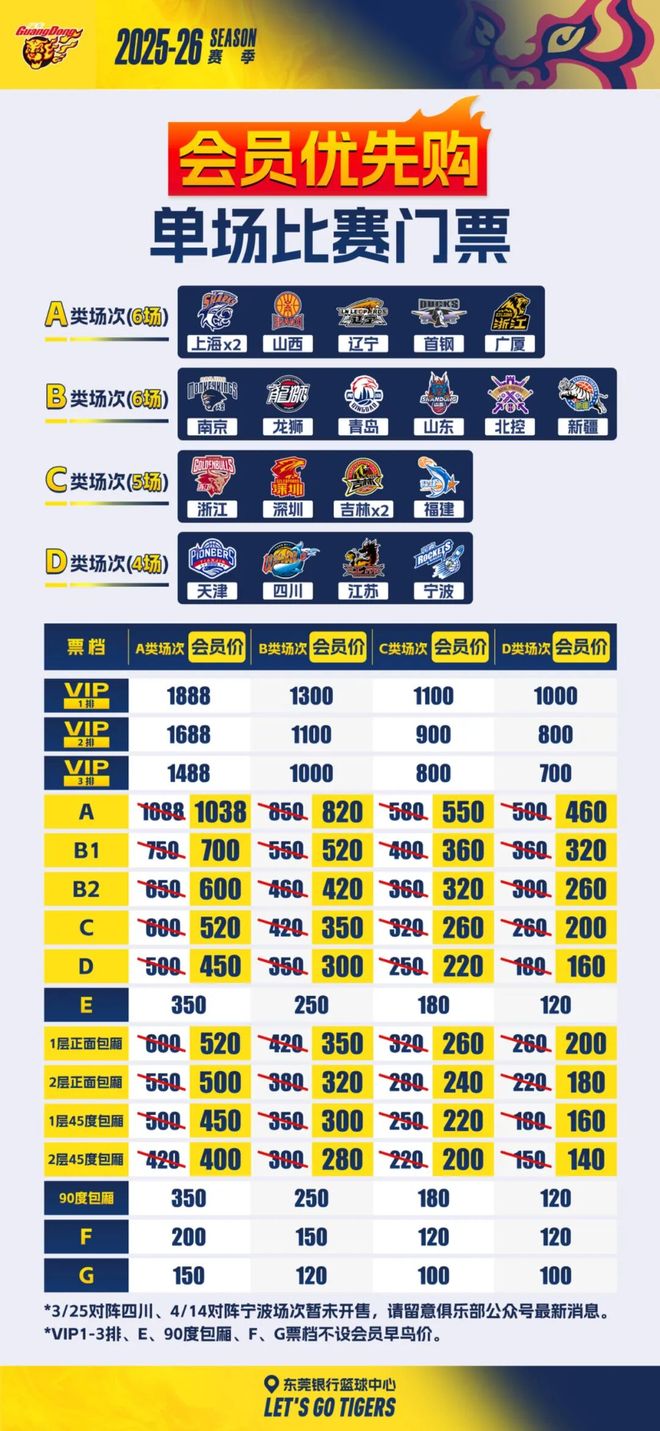 新赛季常规赛单场门票